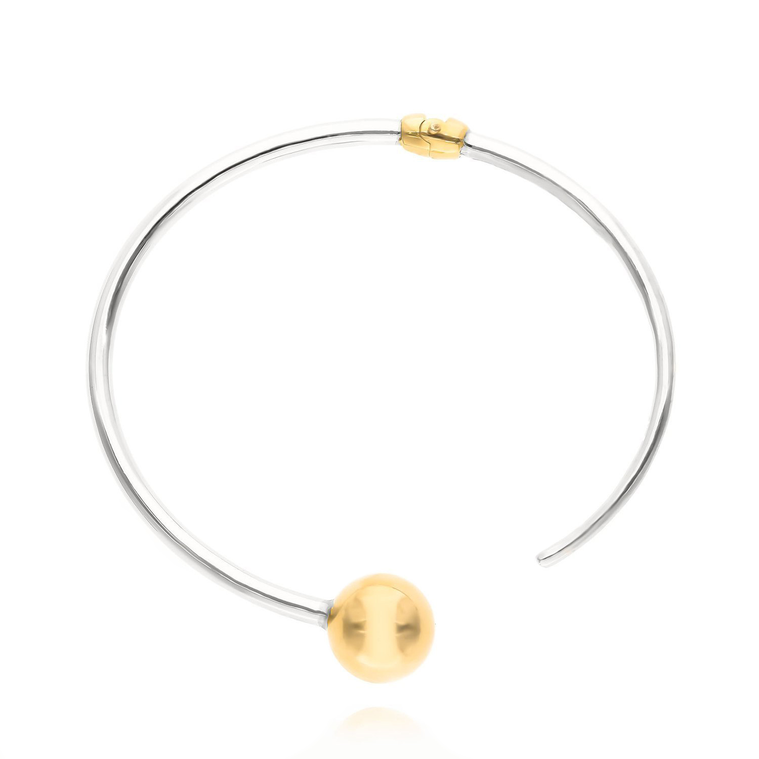 Goldarmband steifer Armreif mit Kugel. Hergestellt aus weiß und gelb 585 Golddie langlebigsten und widerstandsfähigsten. Das Armband ist ganz glatt und halboffen aufklappbar. Der Armreif ist italienische Produktiongekennzeichnet durch hohe Qualität und handwerkliche Verarbeitung. Die perfekte Geschenkidee für eine Frau, die Sie lieben.