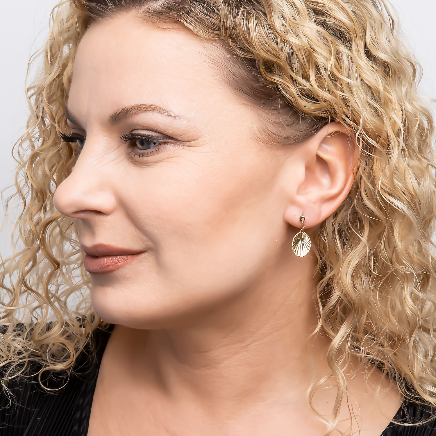 Hängende Goldohrringe in ovaler Form rautenförmige Stiftschließe. Schöne eingeschnittene Ohrringe, sie glänzen erstaunlich auf den Ohren. Dezent und doch sehr originell, sind sie eine tolle Geschenkidee für Ihre Auserwählte.