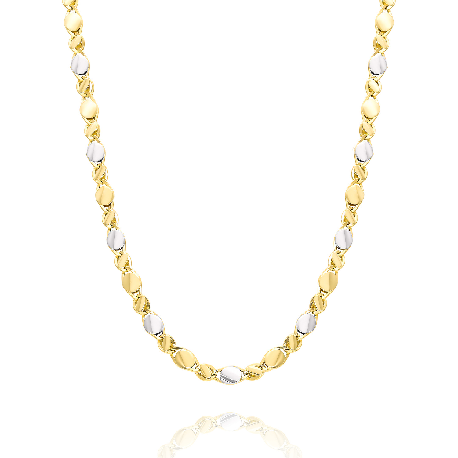 - Goldreiche Halskette Halskette für Frauen, die klassische Eleganz schätzen. Ovale Stücke, die abwechselnd aus Gelb- und Weißgold bestehen. Produkt aus hochwertigem Gold 585 - 14 Karat. Wird mehrere Generationen überdauern.
