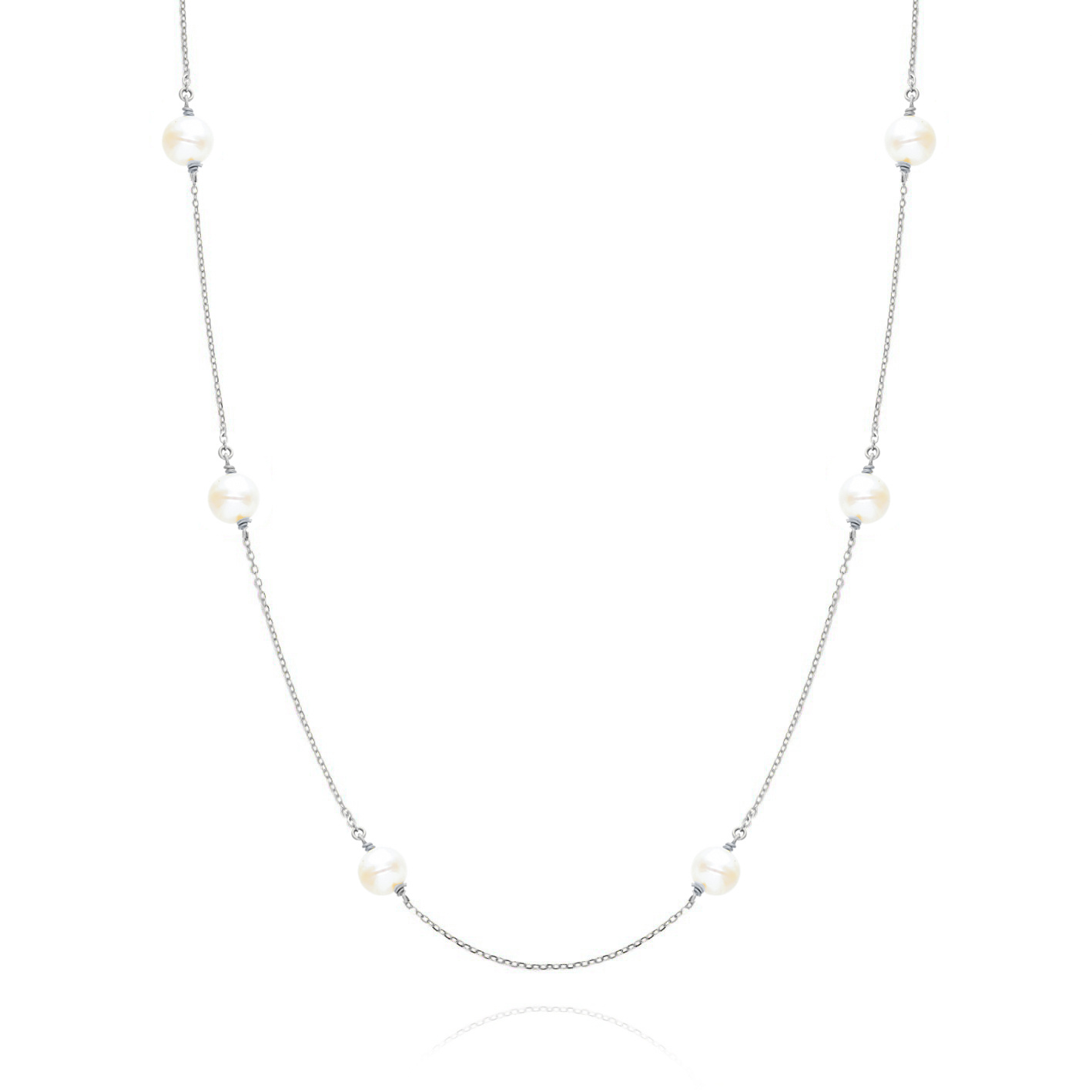 - Goldene Halskette mit ecrufarbenen Perlen. Hergestellt aus 14 Karat Weißgold.