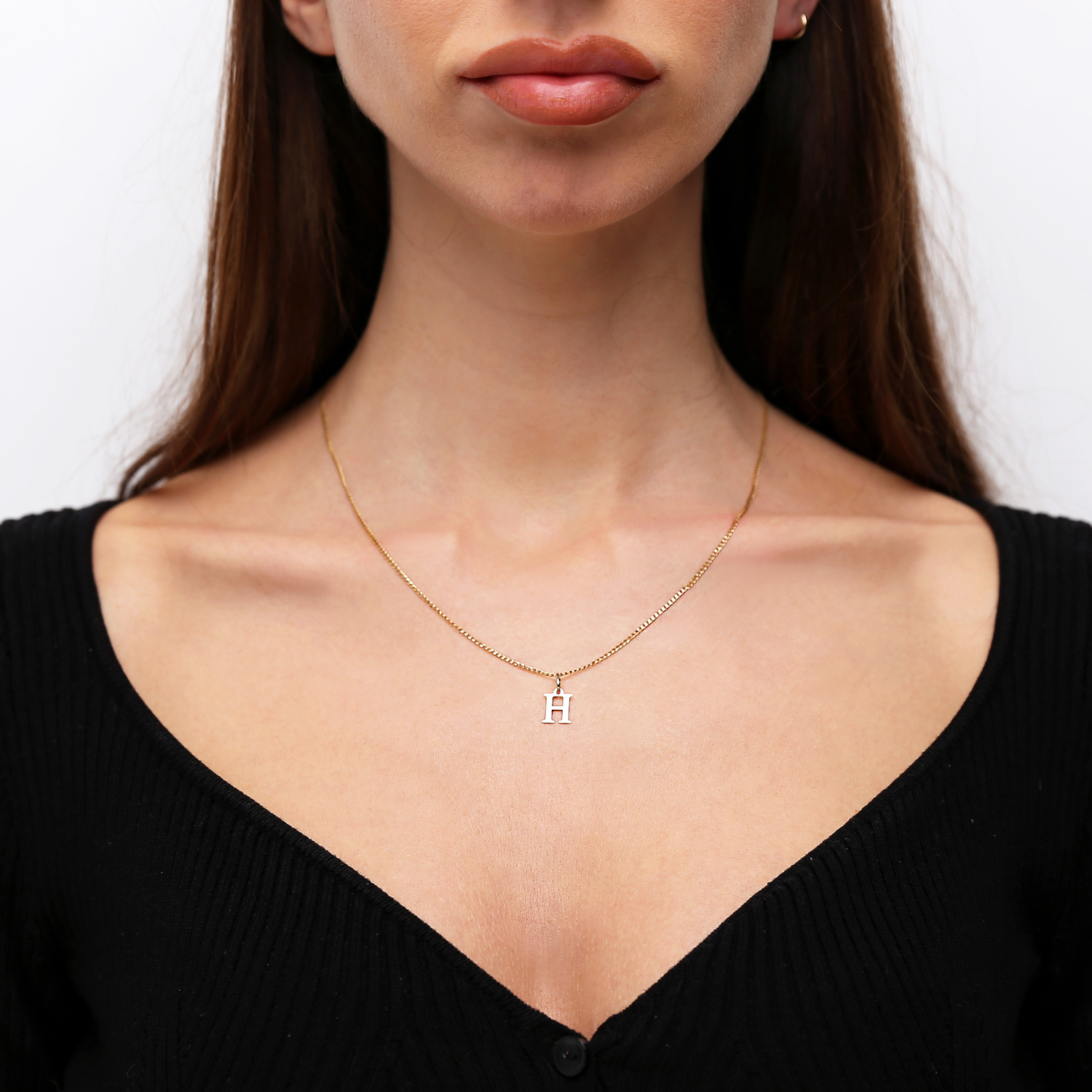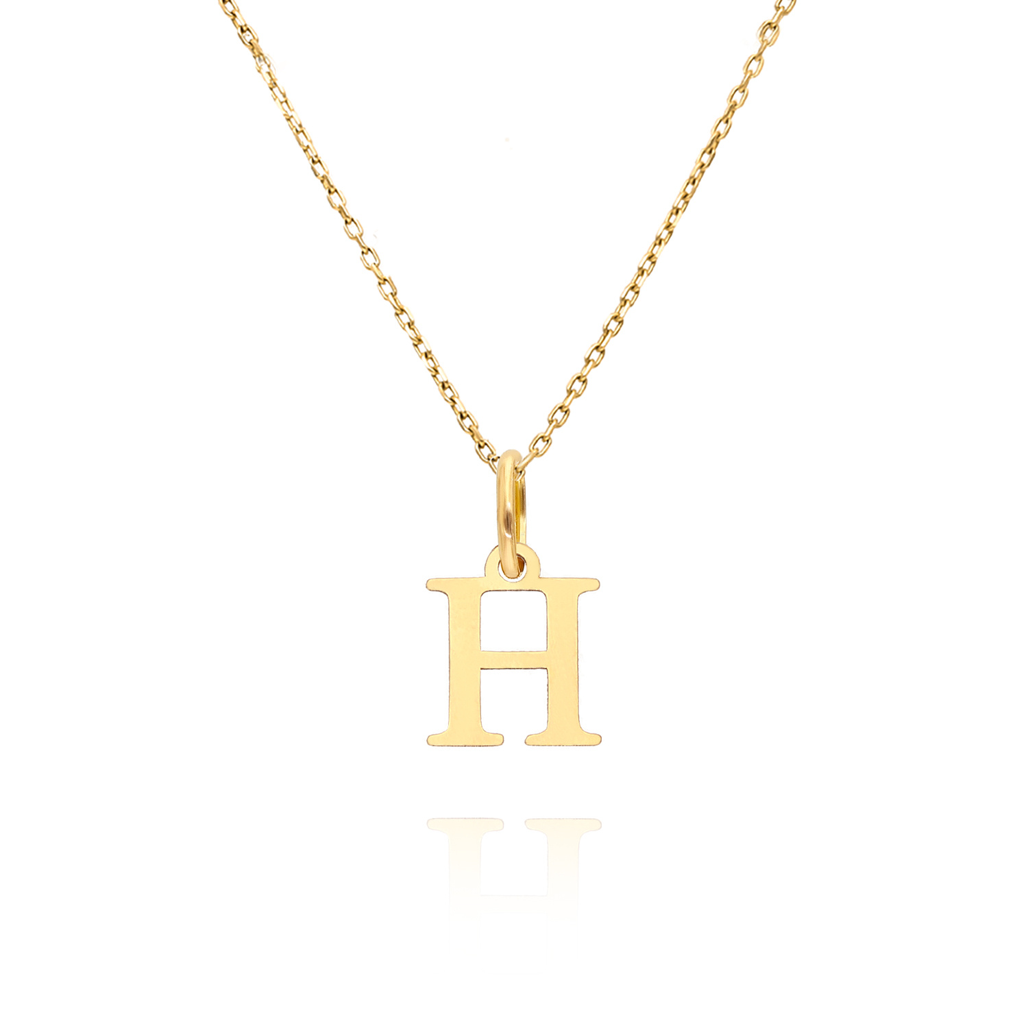 • Ein Goldanhänger in der einfachen Form des Buchstabens H, hergestellt aus 585er Gold.