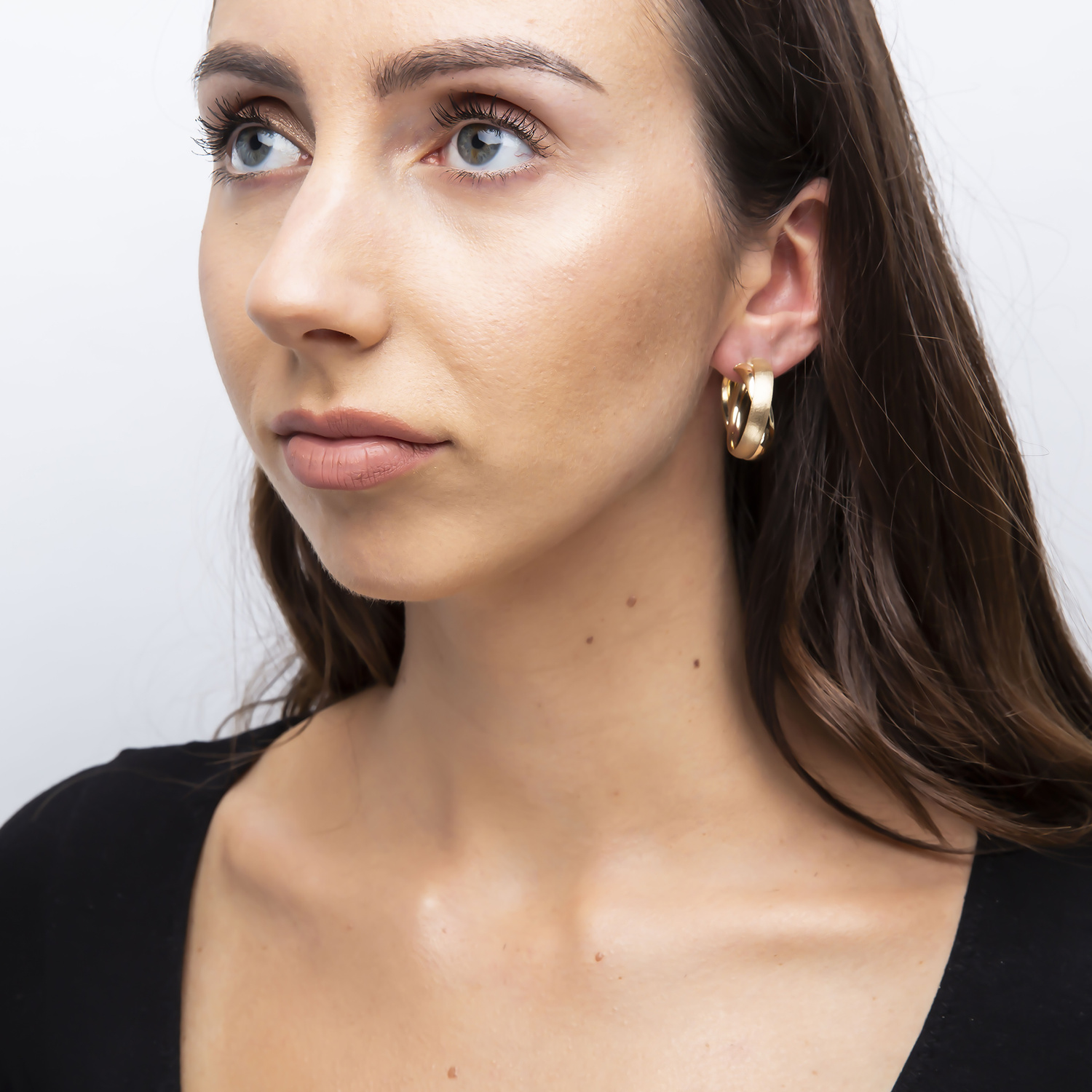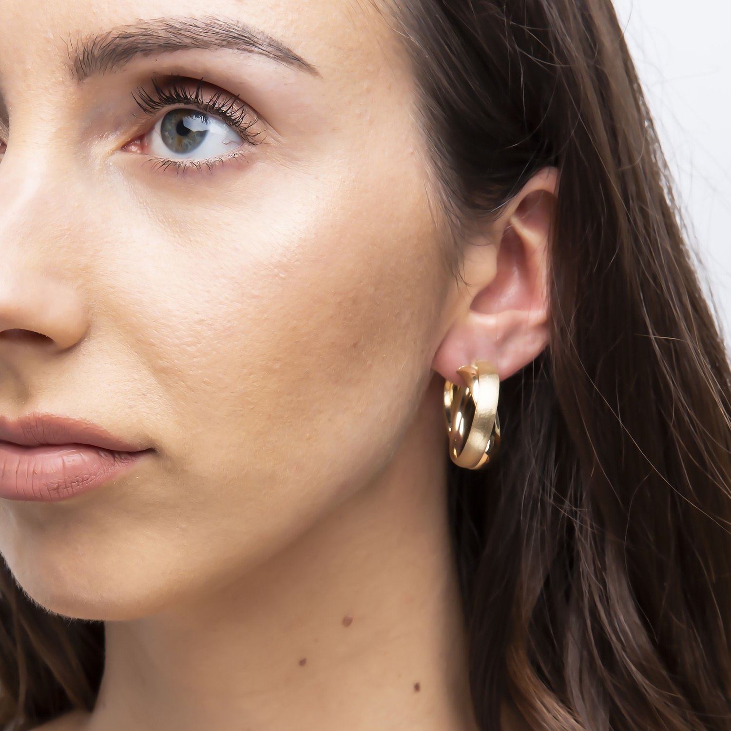 585 Doppelte Ohrringe aus Satin und Glattgold mit Schnappverschluss 3 cm