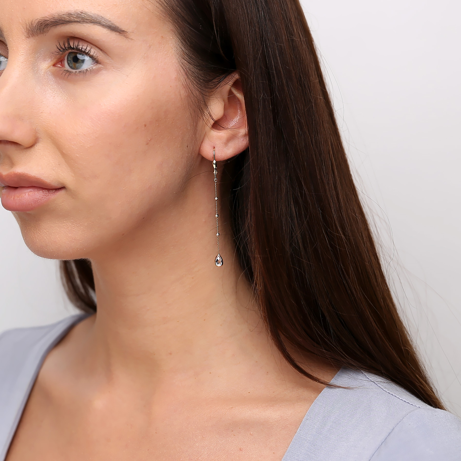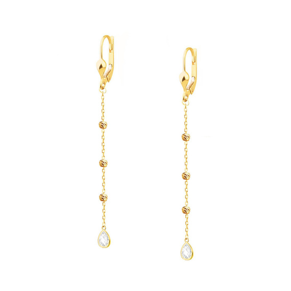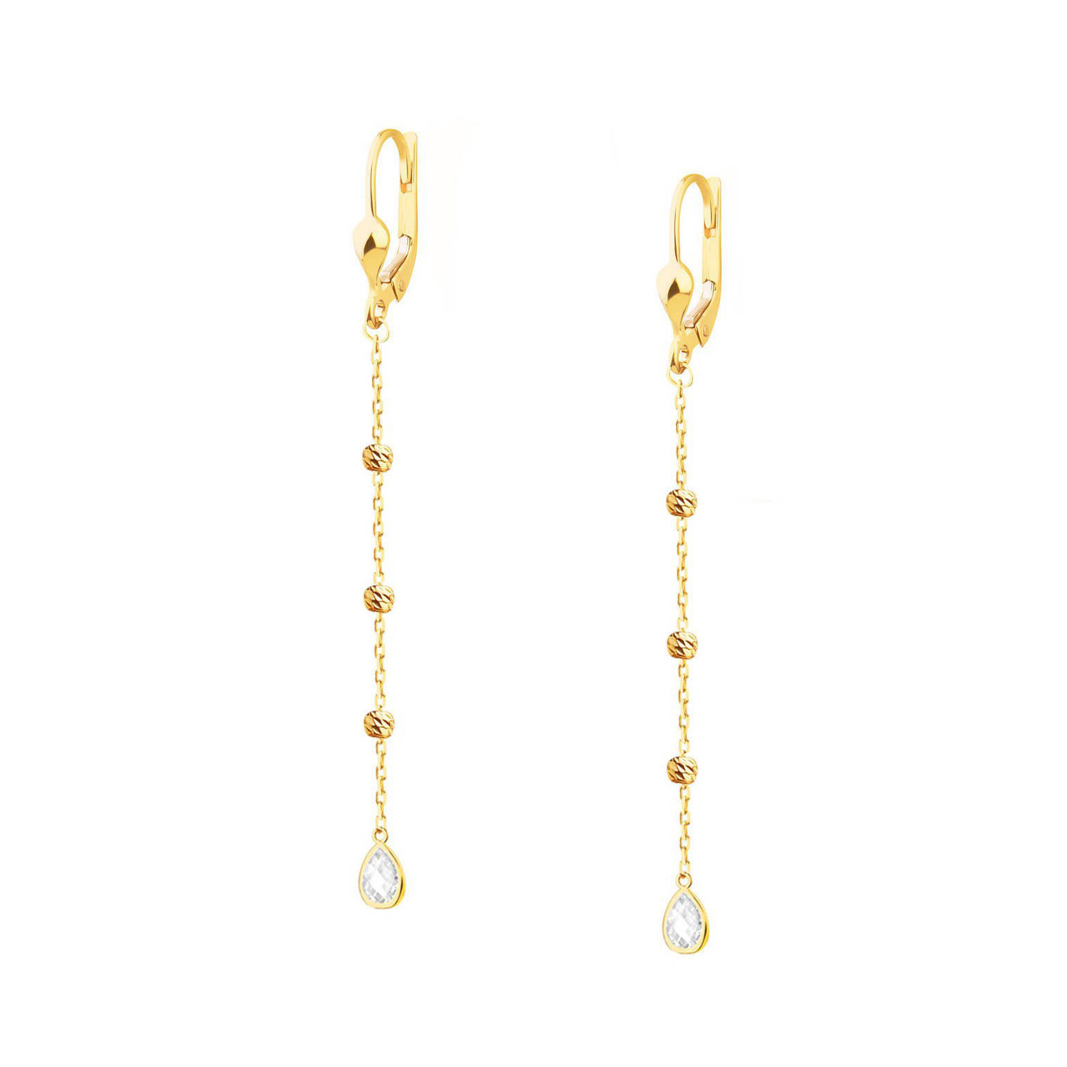 Gold lange 585 Anhänger Ohrringe auf Kette Zirkonia Kugeln