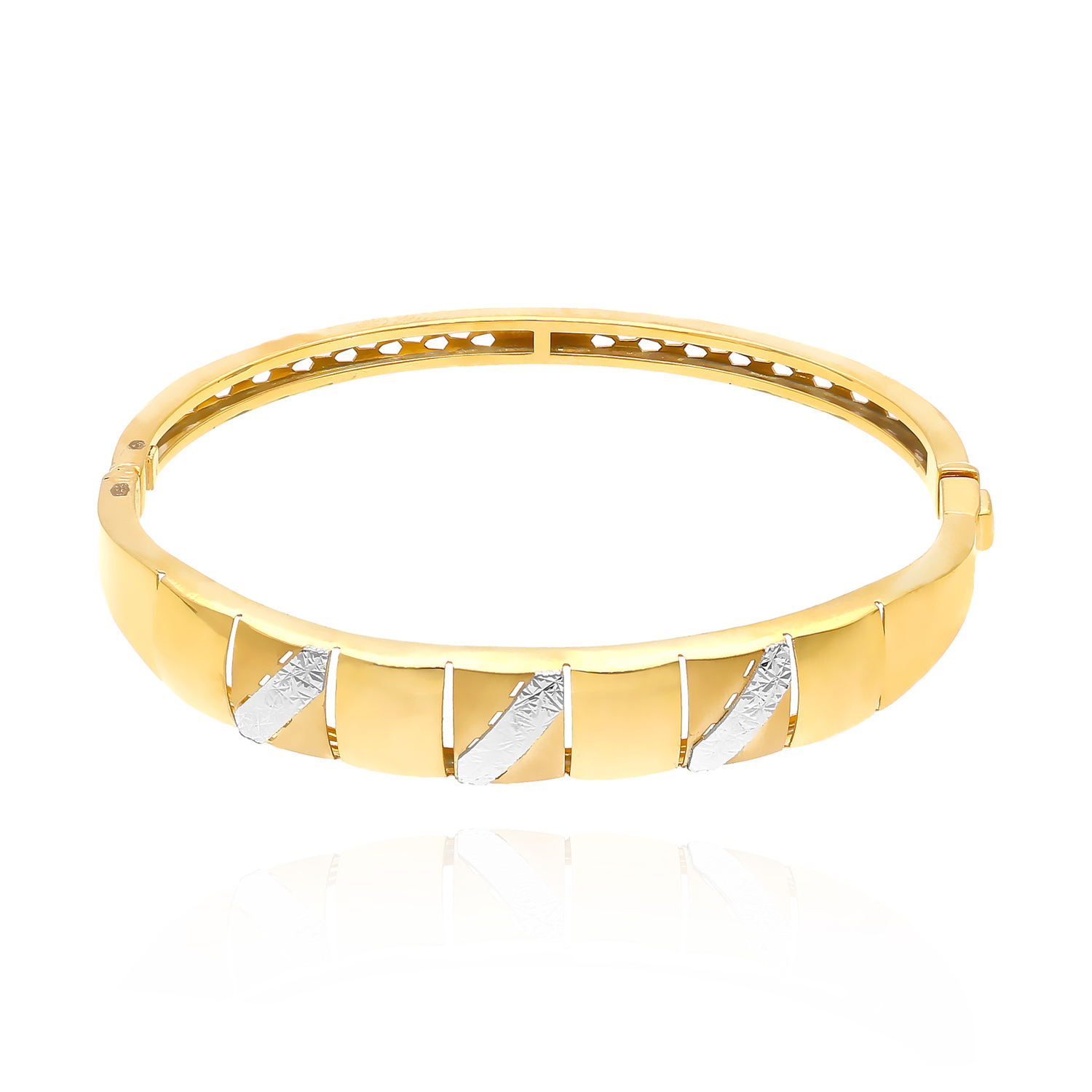 - Luxuriöses steifes Gelbgoldarmband aus hochwertigem 585er Gold. Fest mit einem praktischen Druckknopfverschluss befestigt. Der Zusatz von diamantbesetztem Weißgold unterstreicht seine außergewöhnliche Eleganz.