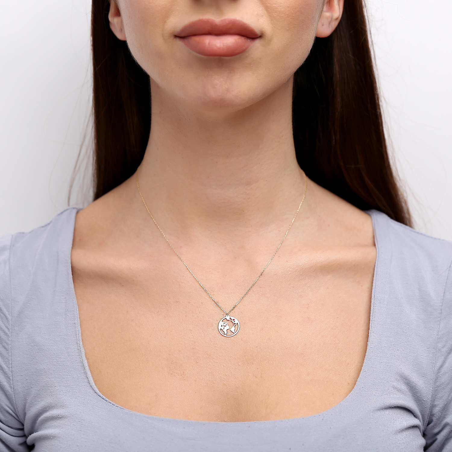 Gold Festkette 585 durchbrochene Kreis Weltkarte 42 - 45 cm