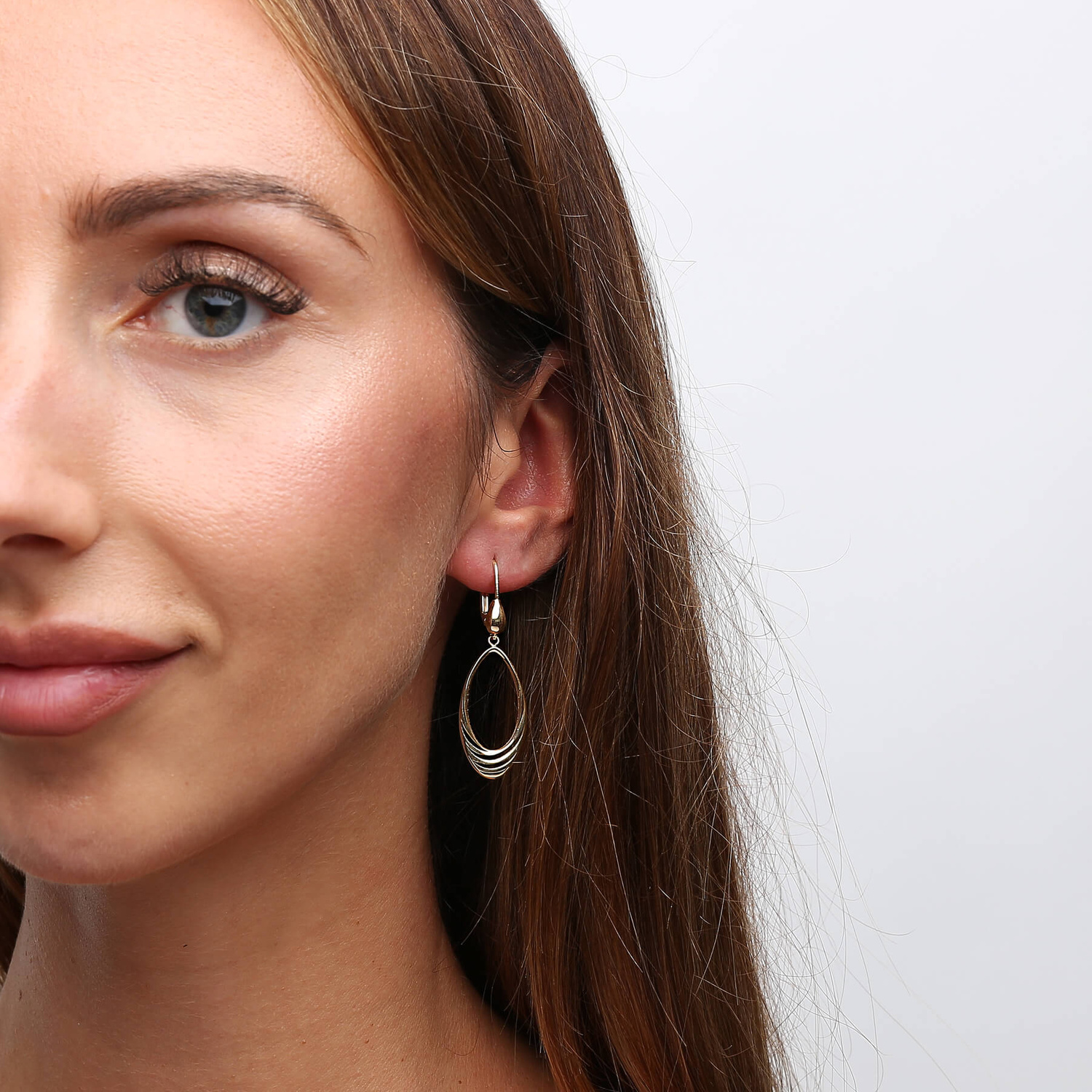 Gold 585 einfarbig lange baumelnde Tropfenohrringe englischer Verschluss
