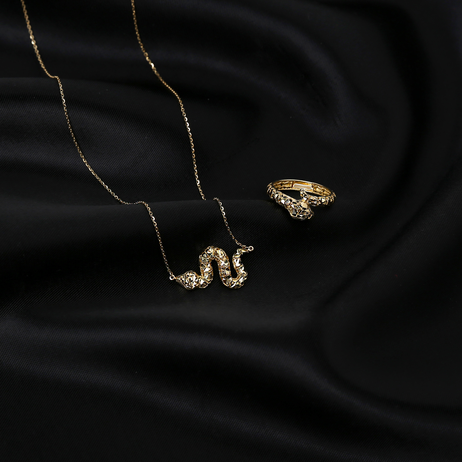 - Einzigartige Goldkette mit Schlangen-Anhänger. Hergestellt aus 14 Karat Gelbgold (Muster 585). Sieht toll aus mit einem offenen Ausschnitt.