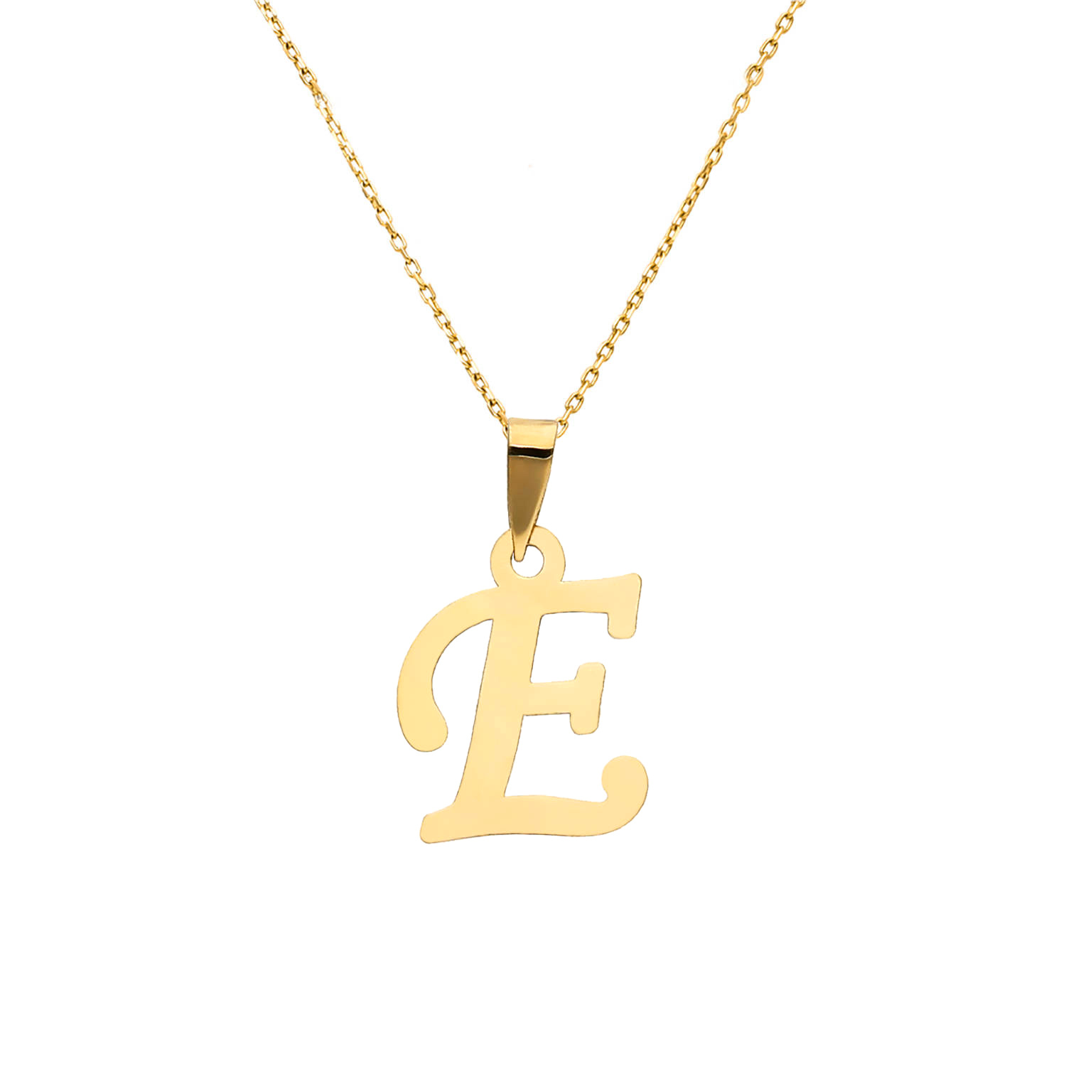Gold-Anhänger Buchstabe E. Hergestellt aus gelbem 14 Karat hochreinem 585er Gold, damit es über viele Jahre hinweg nicht schwarz wird oder seinen Glanz verliert. Das minimalistische, elegante Design macht passt zu jeder feinen Kette wie Fußkettchen, Singapur oder mehr dekorativ - Fuchsschwanz. Der Brief ist das perfekte Geschenk für Frauen zu Geburtstagen, Namenstagen oder anderen besonderen Anlässen.