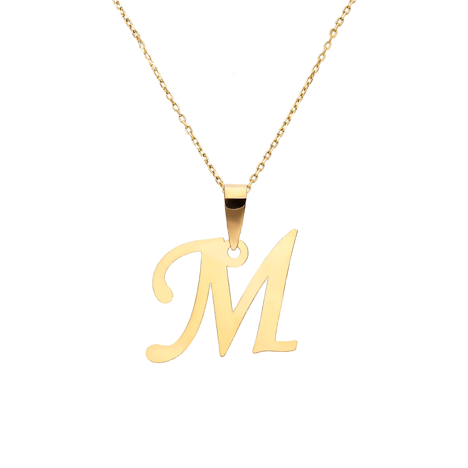 Gold-Anhänger Buchstabe M. Hergestellt aus gelbem 14 Karat hochreinem 585er Gold, damit es über viele Jahre hinweg nicht schwarz wird oder seinen Glanz verliert. Das minimalistische, elegante Design macht passt zu jeder feinen Kette wie Fußkettchen, Singapur oder mehr dekorativ - Fuchsschwanz. Der Brief ist ein ideales Geschenk für Frauen zu Geburtstagen, Namenstagen oder anderen besonderen Anlässen.