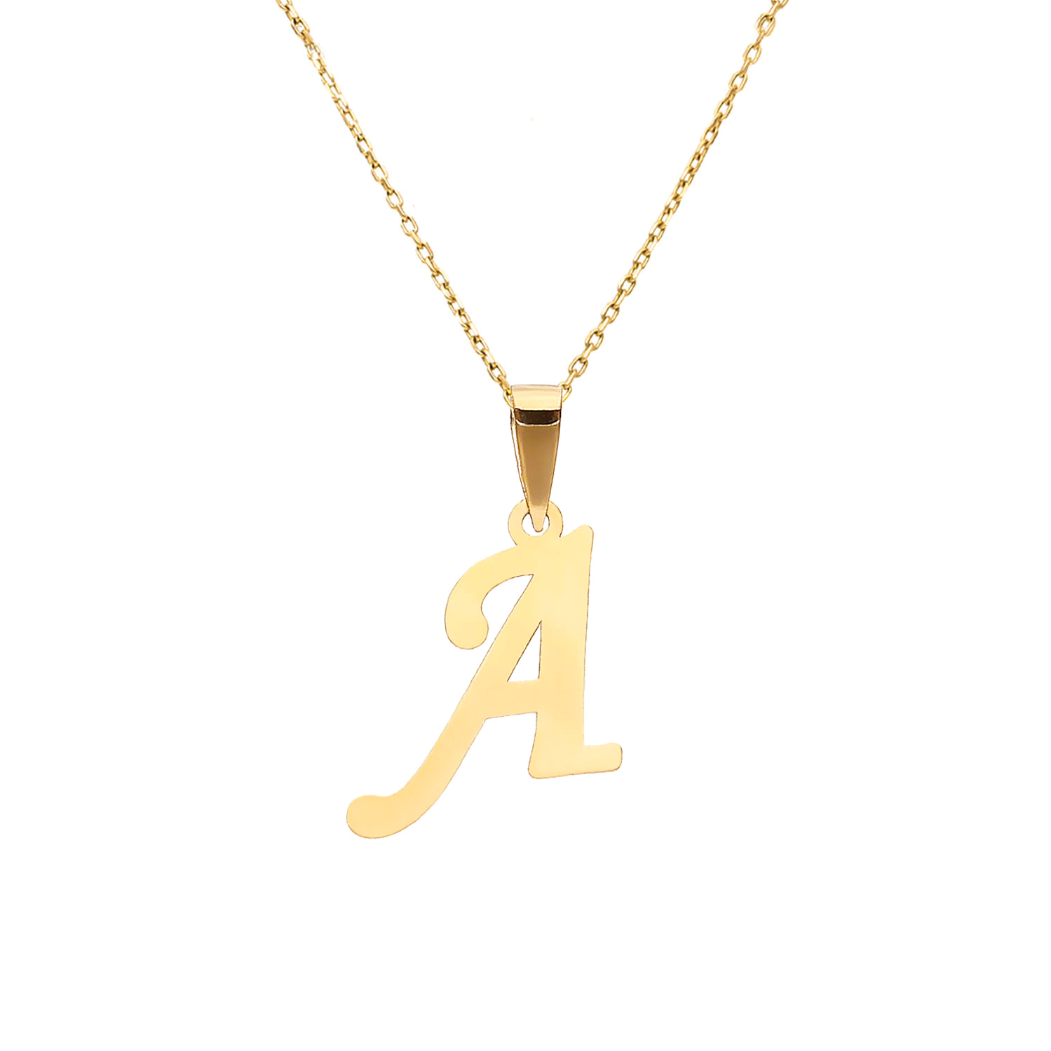 Anhänger mit dem Buchstaben A aus Gold. Hergestellt aus gelbem 14 Karat hochreinem 585er Gold, damit es über viele Jahre hinweg nicht schwarz wird oder seinen Glanz verliert. Das minimalistische, elegante Design macht passt zu jeder feinen Kette wie Fußkettchen, Singapur oder dekorativem Fuchsschwanz. Der Brief ist das perfekte Geschenk für Frauen zu Geburtstagen, Namenstagen oder anderen besonderen Anlässen.