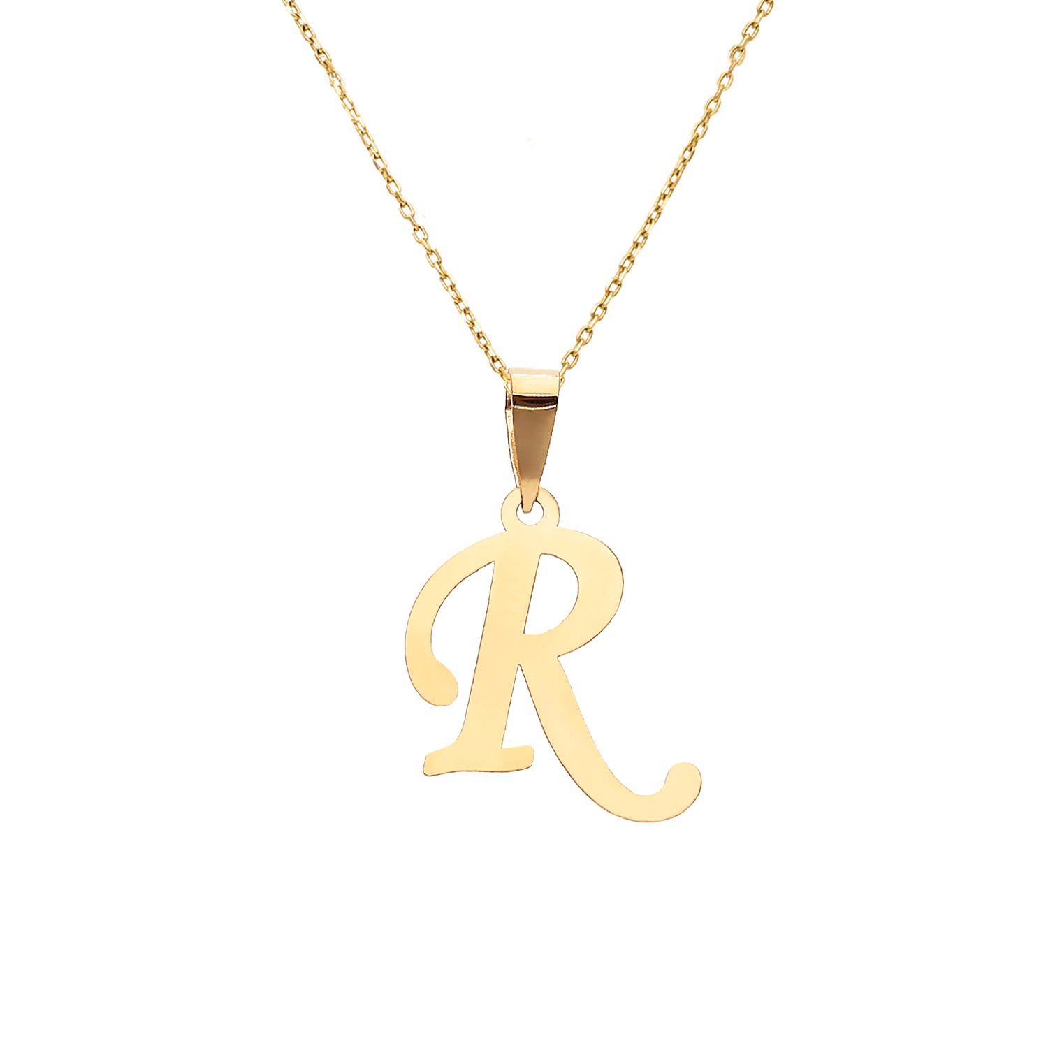 Gold-Anhänger Buchstabe R. Hergestellt aus gelbem 14 Karat hochreinem 585er Gold, damit es über viele Jahre hinweg nicht schwarz wird oder seinen Glanz verliert. Das minimalistische, elegante Design macht passt zu jeder feinen Kette wie Fußkettchen, Singapur oder dekorativem Fuchsschwanz. Der Brief ist das perfekte Geschenk für Frauen zu Geburtstagen, Namenstagen oder anderen besonderen Anlässen.
