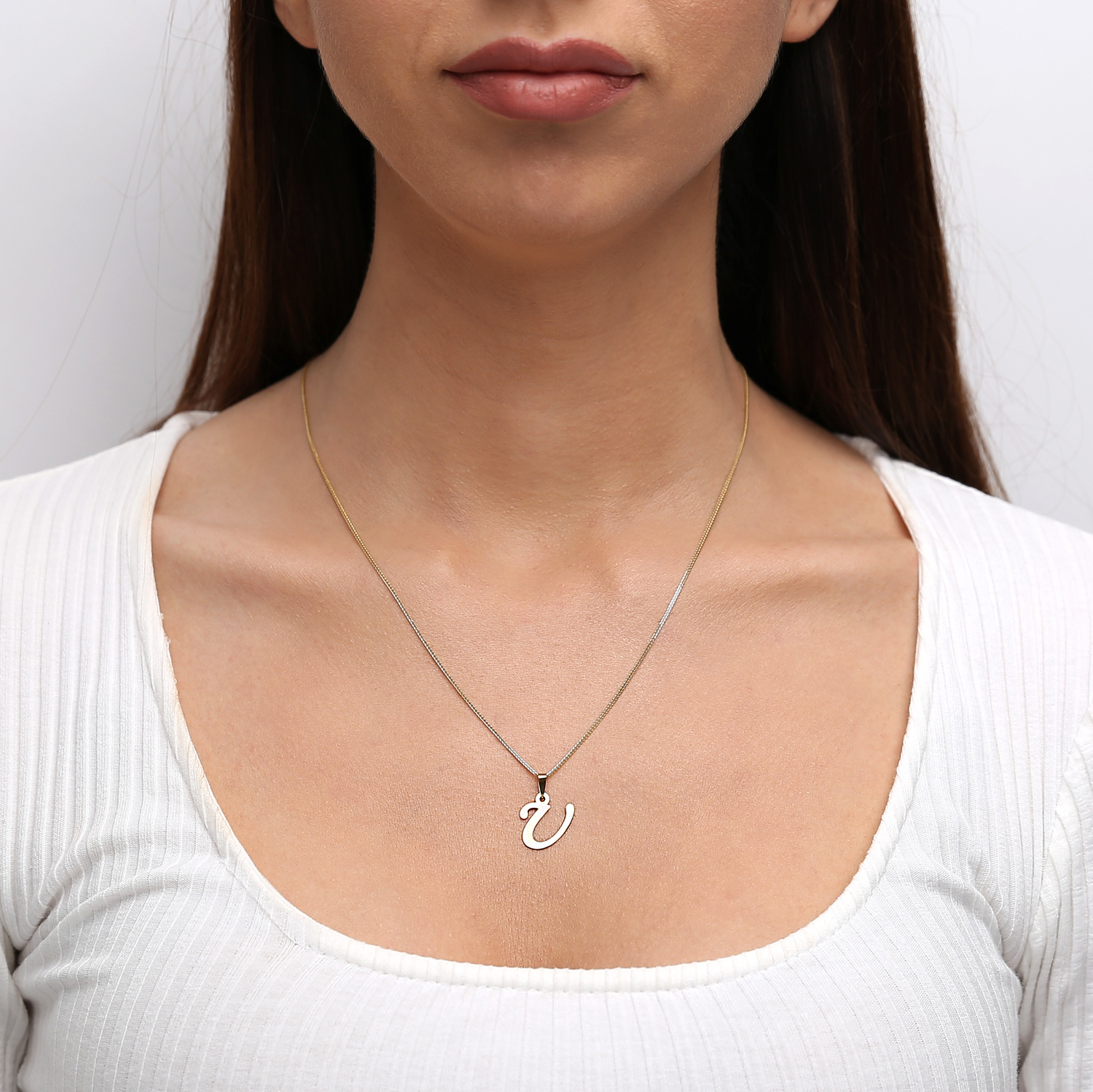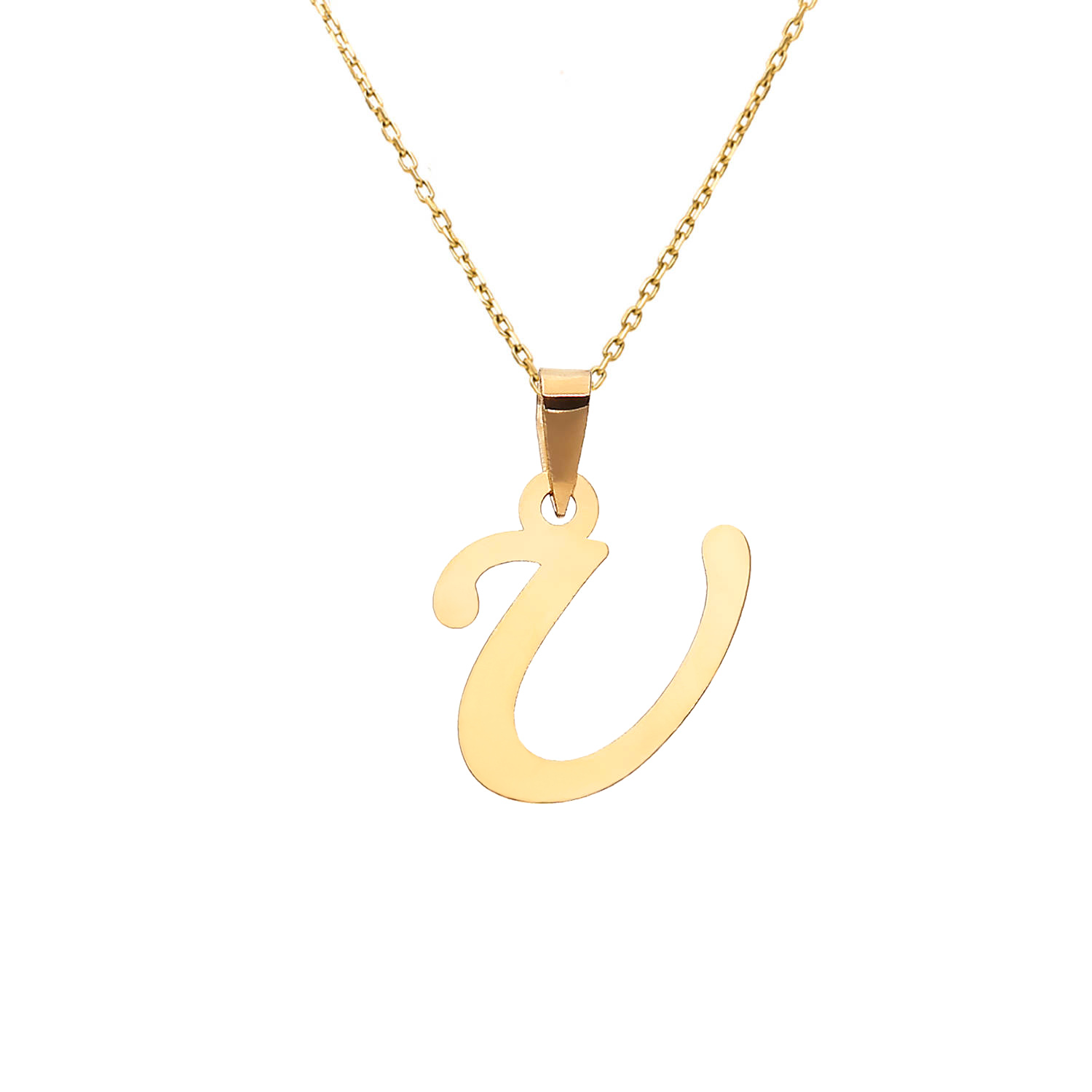 Gold-Anhänger Buchstabe U. Hergestellt aus gelbem 14 Karat hochreinem 585er Gold, damit es über viele Jahre hinweg nicht schwarz wird oder seinen Glanz verliert. Das minimalistische, elegante Design macht passt zu jeder feinen Kette wie Fußkettchen, Singapur oder mehr dekorativ - Fuchsschwanz. Der Brief ist ein ideales Geschenk für Frauen zu Geburtstagen, Namenstagen oder anderen besonderen Anlässen.
