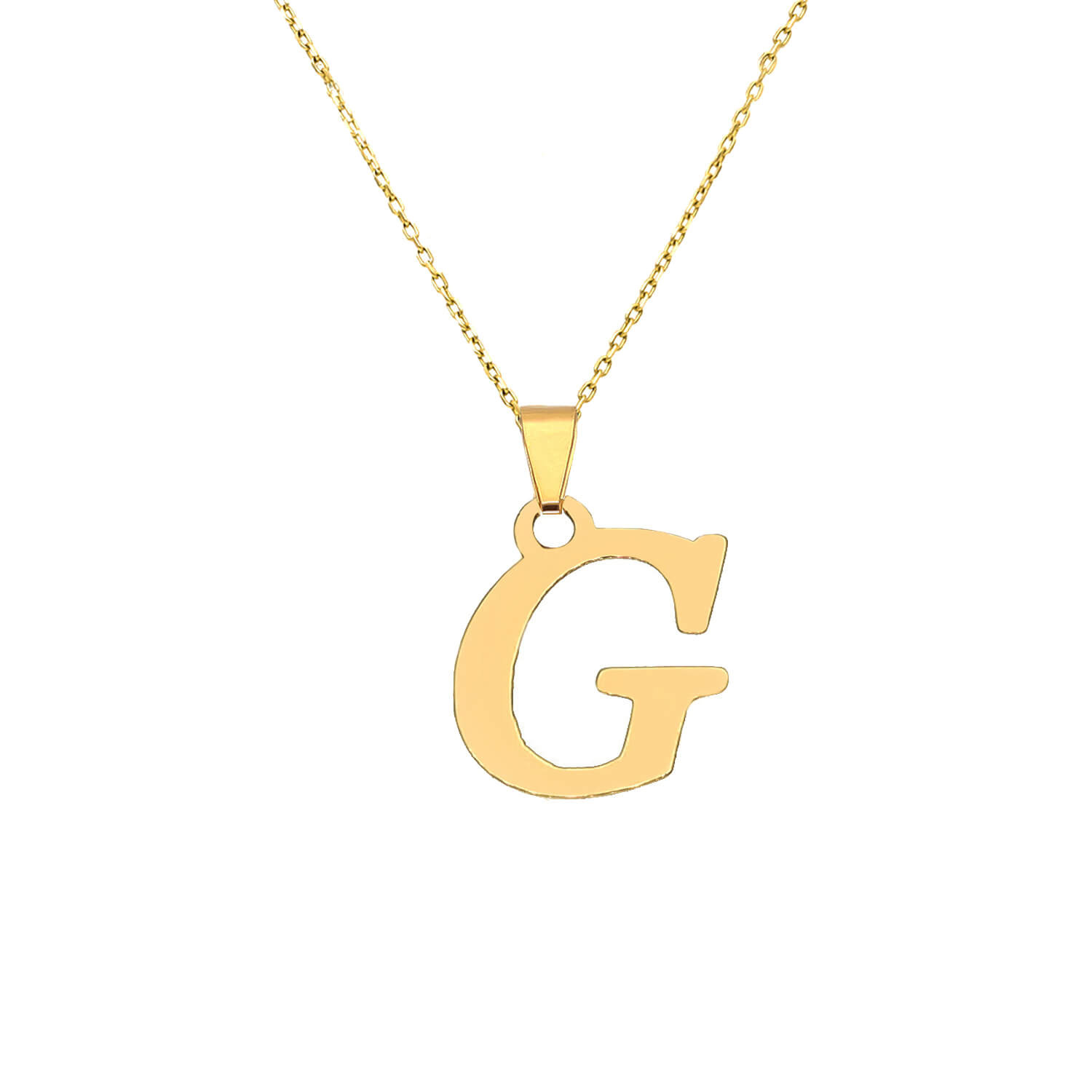 - Ein goldener Anhänger in Form des Buchstabens G, hergestellt aus 585er Gold.
