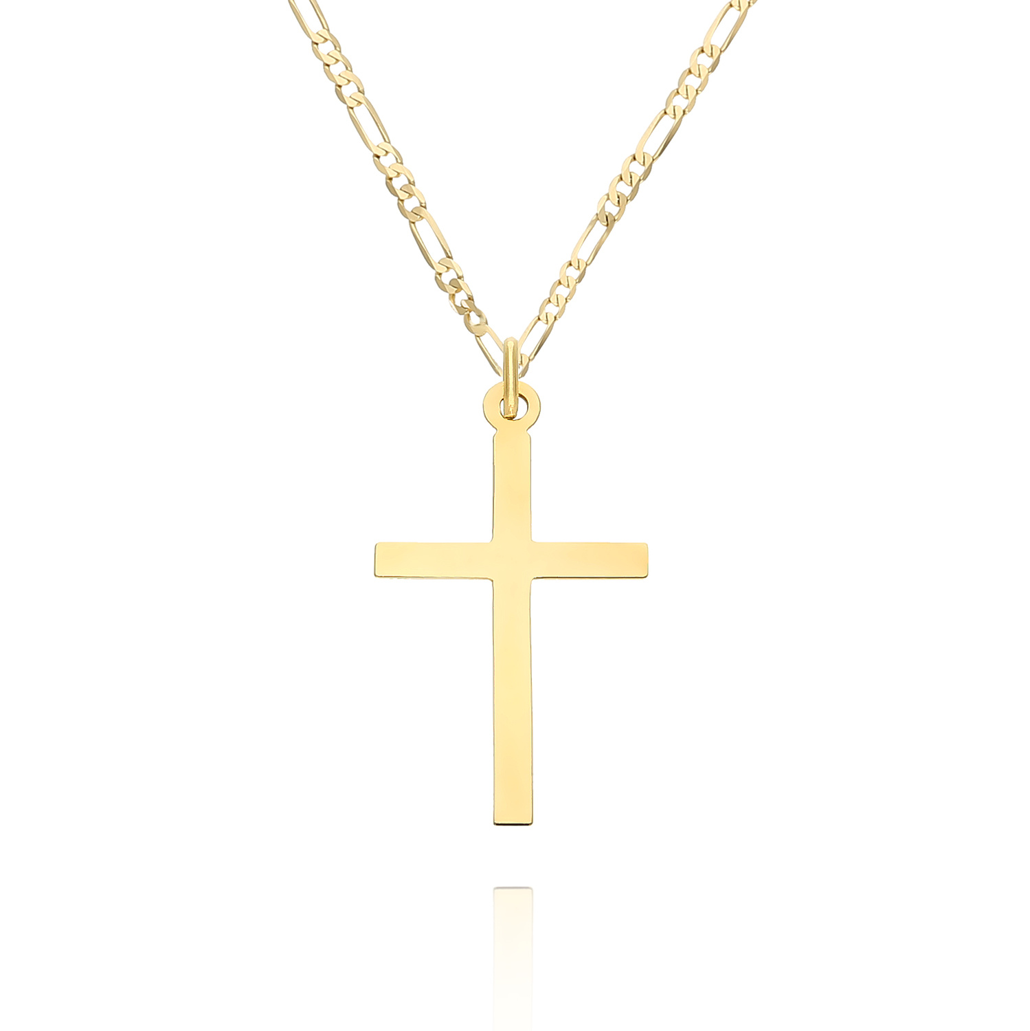 Glatter Anhänger mit Kreuzmotiv. Mit größter Sorgfalt aus 585er Gold handgefertigtam widerstandsfähigsten gegenüber externen Faktoren. Ein perfektes Geschenk zur Erstkommunion. oder Konfirmation. Wunderschönes Set mit figaro, singapur, anklet weave Kette.
