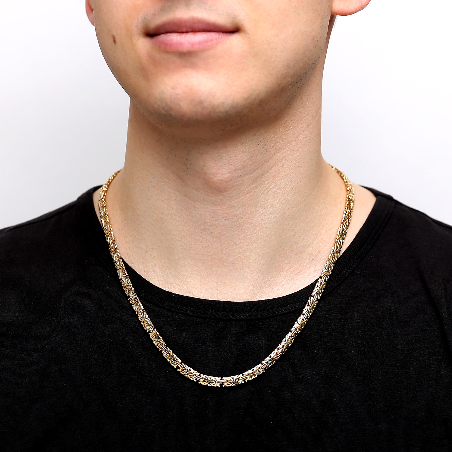 Auffällige Goldkette mit königlichem Geflecht. Hergestellt aus dem hochwertigsten Gold von 585 (14K Gold), wodurch es nicht schwarze und verliert nicht seinen Glanz. Die sorgfältige Verarbeitung lässt es im Licht schön glänzen, es ist originell, reichhaltig und sieht am Dekolleté sowohl in alltäglichen als auch in schickeren Outfits wunderbar aus. Eine tolle Geschenkidee für einen lieben Menschen zu vielen Anlässen.