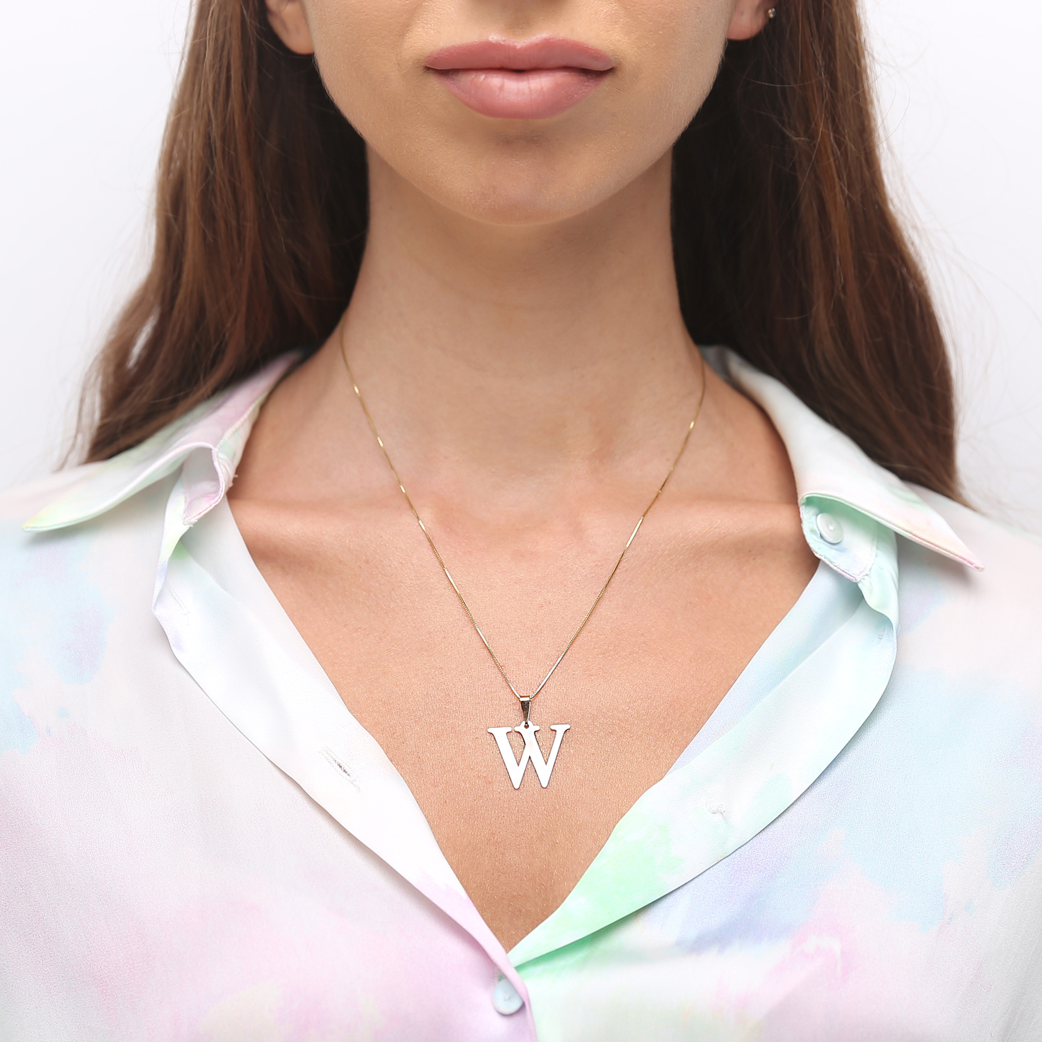 Gold-Anhänger Buchstabe W. Hergestellt aus gelbem 14 Karat hochreinem 585er Gold, damit es über viele Jahre hinweg nicht schwarz wird oder seinen Glanz verliert. Das minimalistische, elegante Design macht passt zu jeder feinen Kette wie Fußkettchen, Singapur oder mehr dekorativ - Fuchsschwanz. Der Brief ist ein ideales Geschenk für Frauen zu Geburtstagen, Namenstagen oder anderen besonderen Anlässen.
