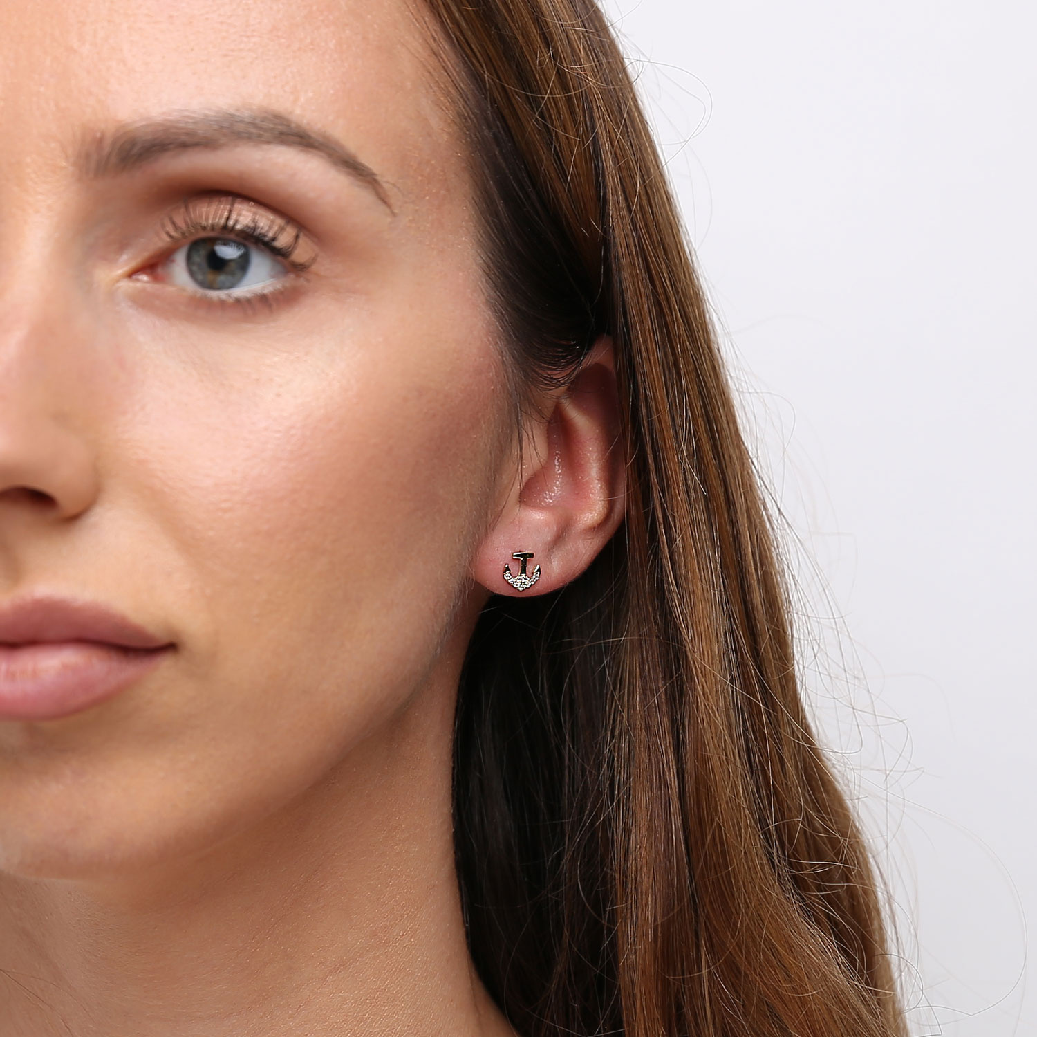 Goldohrringe in Form von Ankern, verziert mit Zirkonen. Die Ohrringe sind aus gelbem Gold von 585 Probe (14-Karat Gold) gemachtdas extrem widerstandsfähig gegen äußere Einflüsse ist. Minimalistische Ohrringe, perfekt für das tägliche Tragen. Ausgestattet mit einem bequemen Stockverschluss.