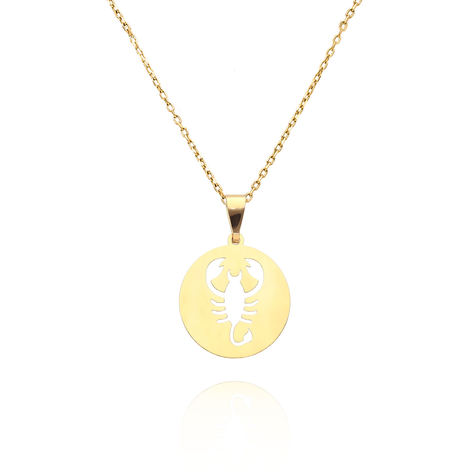 Gold-Anhänger Sternzeichen SKORPION. Hergestellt aus gelbem 14 Karat hochreinem 585er Gold, damit es über viele Jahre hinweg nicht schwarz wird oder seinen Glanz verliert. Das minimalistische, elegante Design macht passt zu jeder feinen Kette wie Fußkettchen, Singapur oder mehr dekorativ - Fuchsschwanz. Der Sternzeichen-Anhänger ist das perfekte Geschenk für Geburtstage, Namenstage oder andere besondere Anlässe.