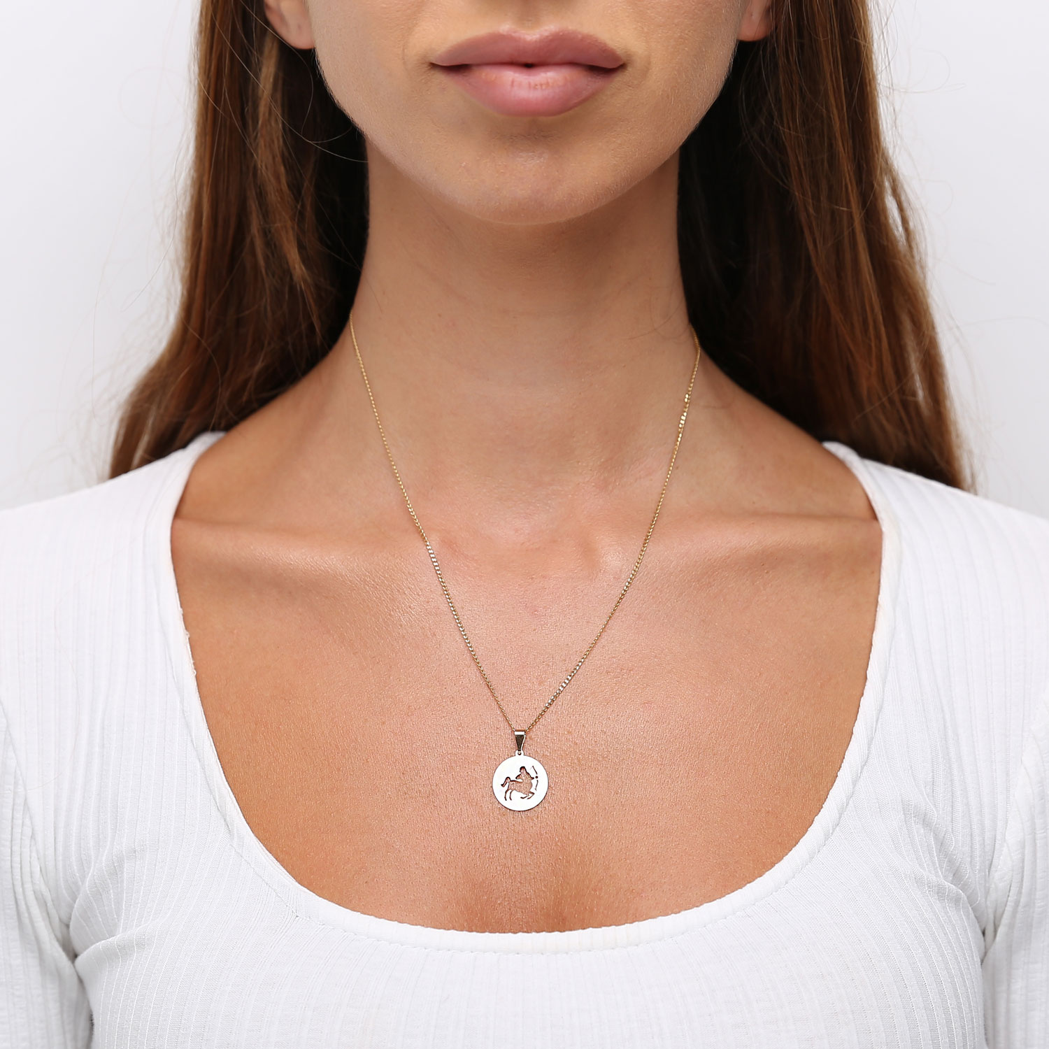 - Runder Goldanhänger mit Tierkreiszeichen. Hergestellt aus hochreinem 585er Gold.