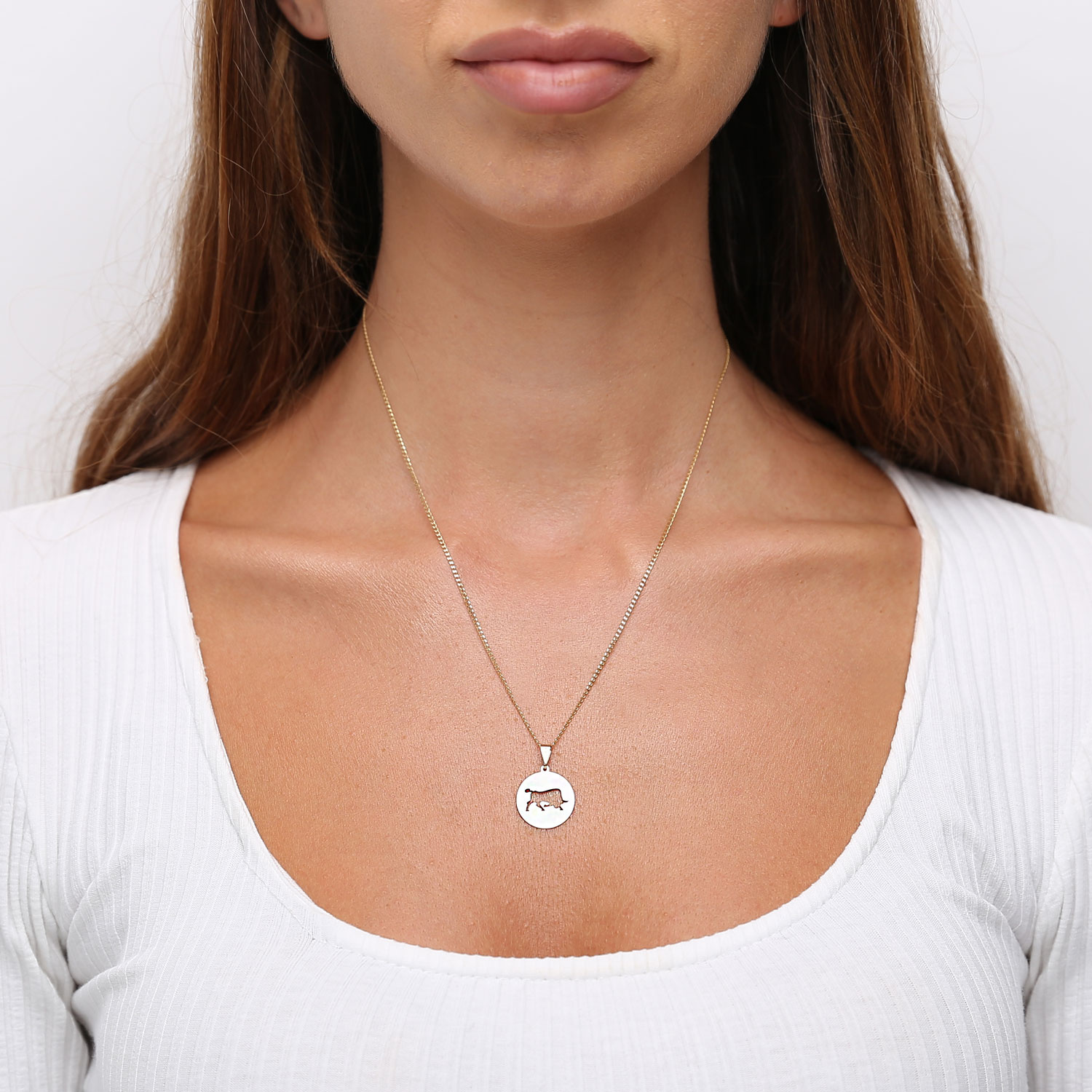 - Runder Goldanhänger mit Tierkreiszeichen. Hergestellt aus hochreinem 585er Gold.