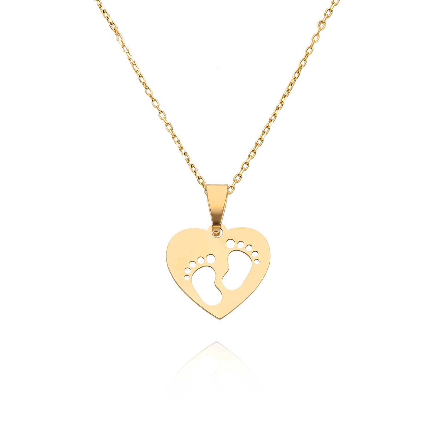 Goldherzanhänger mit Füßen. Hergestellt aus gelbem 14 Karat hochreinem 585er Gold, damit es über viele Jahre hinweg nicht schwarz wird oder seinen Glanz verliert. Das minimalistische, elegante Design macht passt zu jeder feinen Kette wie Fußkettchen, Singapur oder dekorativem Fuchsschwanz. Der Anhänger ist das perfekte Geschenk für eine Babyparty und andere besondere Anlässe.