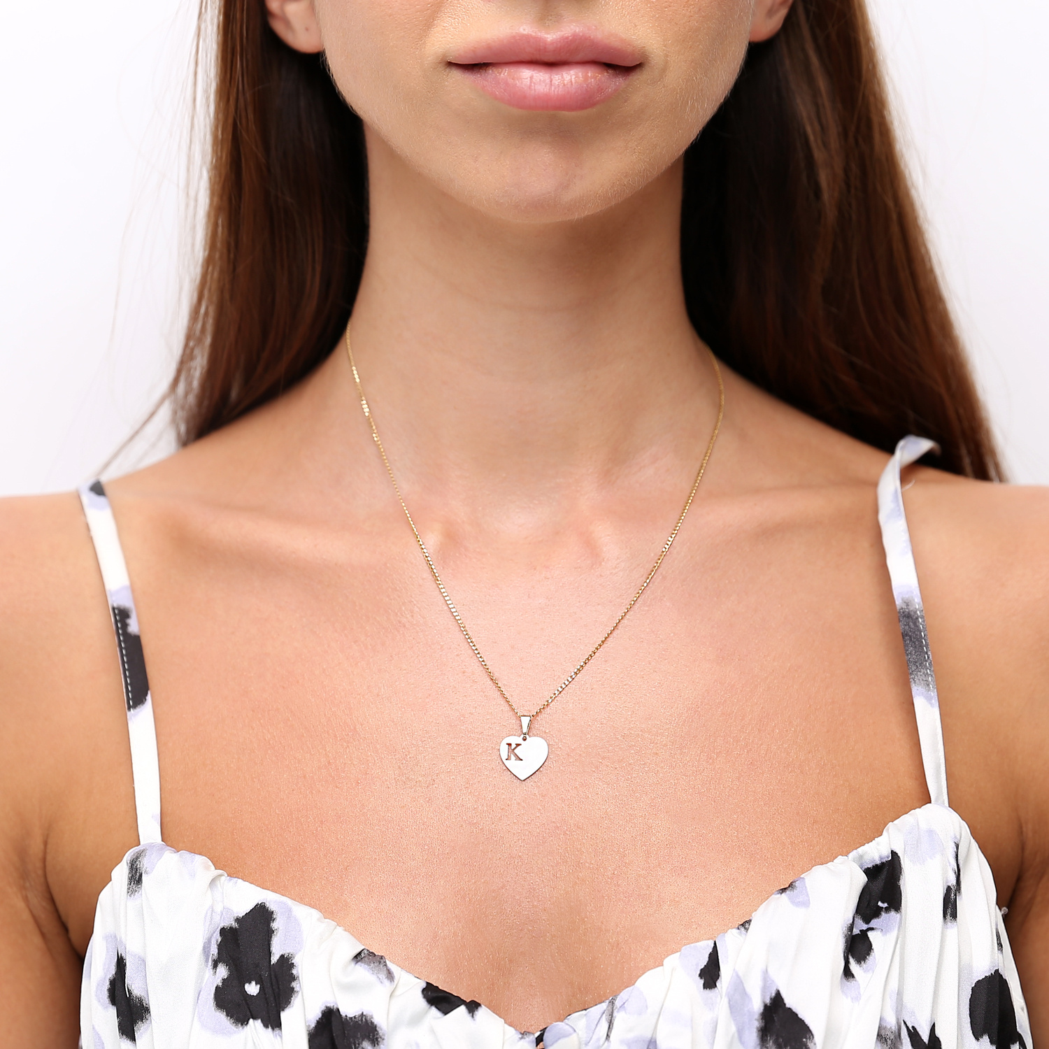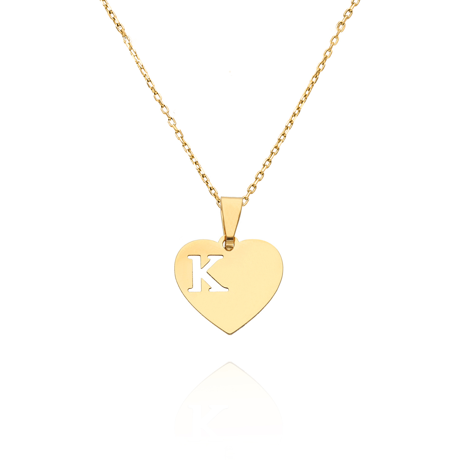 Herzanhänger aus Gold mit dem Buchstaben K. Hergestellt aus gelbem 14 Karat hochreinem 585er Gold, damit es über viele Jahre hinweg nicht schwarz wird oder seinen Glanz verliert. Das minimalistische, elegante Design macht passt zu jeder feinen Kette wie Fußkettchen, Singapur oder dekorativem Fuchsschwanz. Der Anhänger ist das perfekte Geschenk für besondere Anlässe.