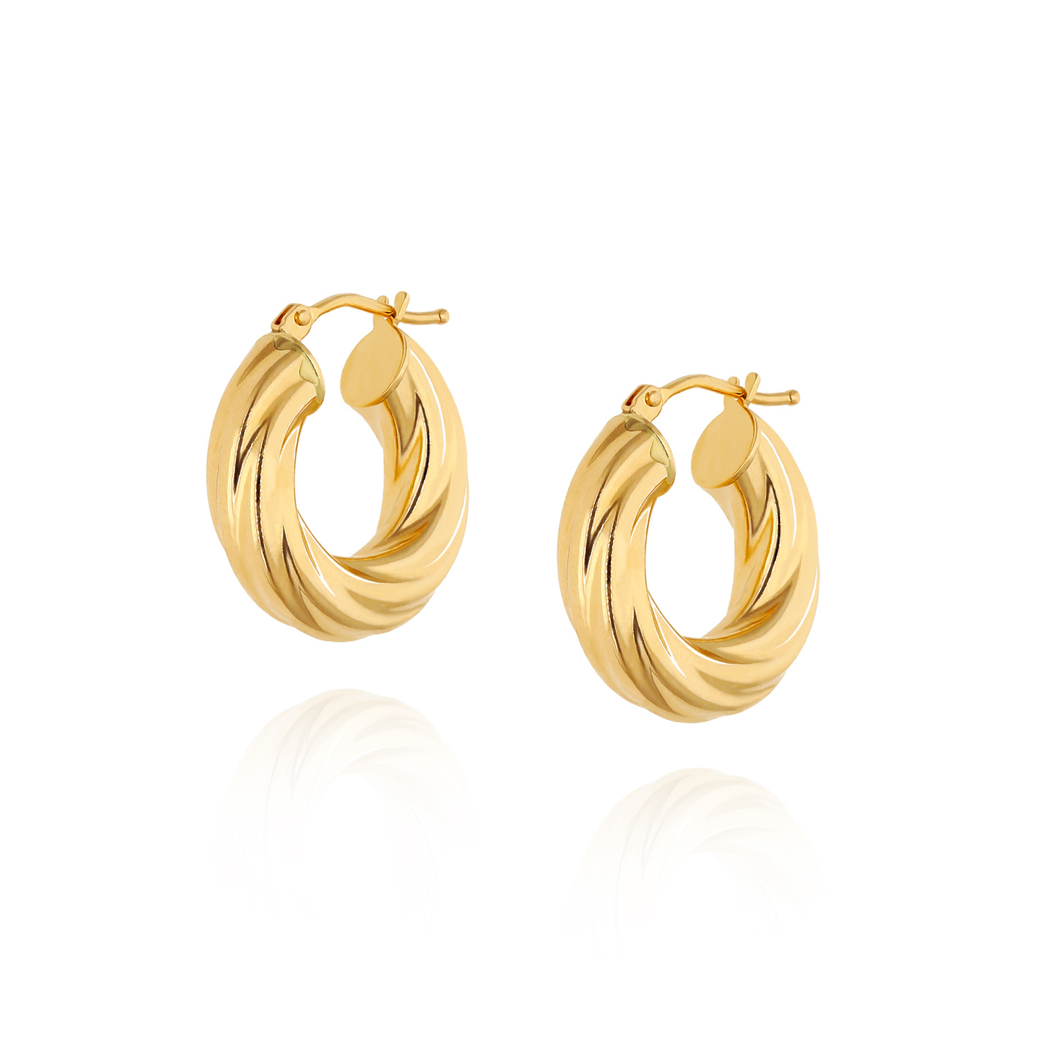 Dicke kreisförmige Ohrringe von gelb 585-Probe Gold - 14 Karat. Die Ohrringe sind eingeschnitten, wodurch sie sehr auffällig aussehen. Origineller Schmuck für kämpferische und selbstbewusste Frauen! Sie lassen sich perfekt mit einer Halskette und einem Kordelarmband kombinieren.