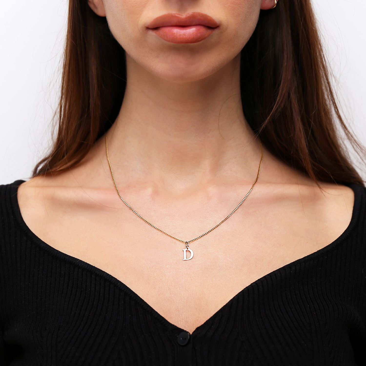• Ein Goldanhänger in der einfachen Form des Buchstabens H, hergestellt aus 585er Gold.