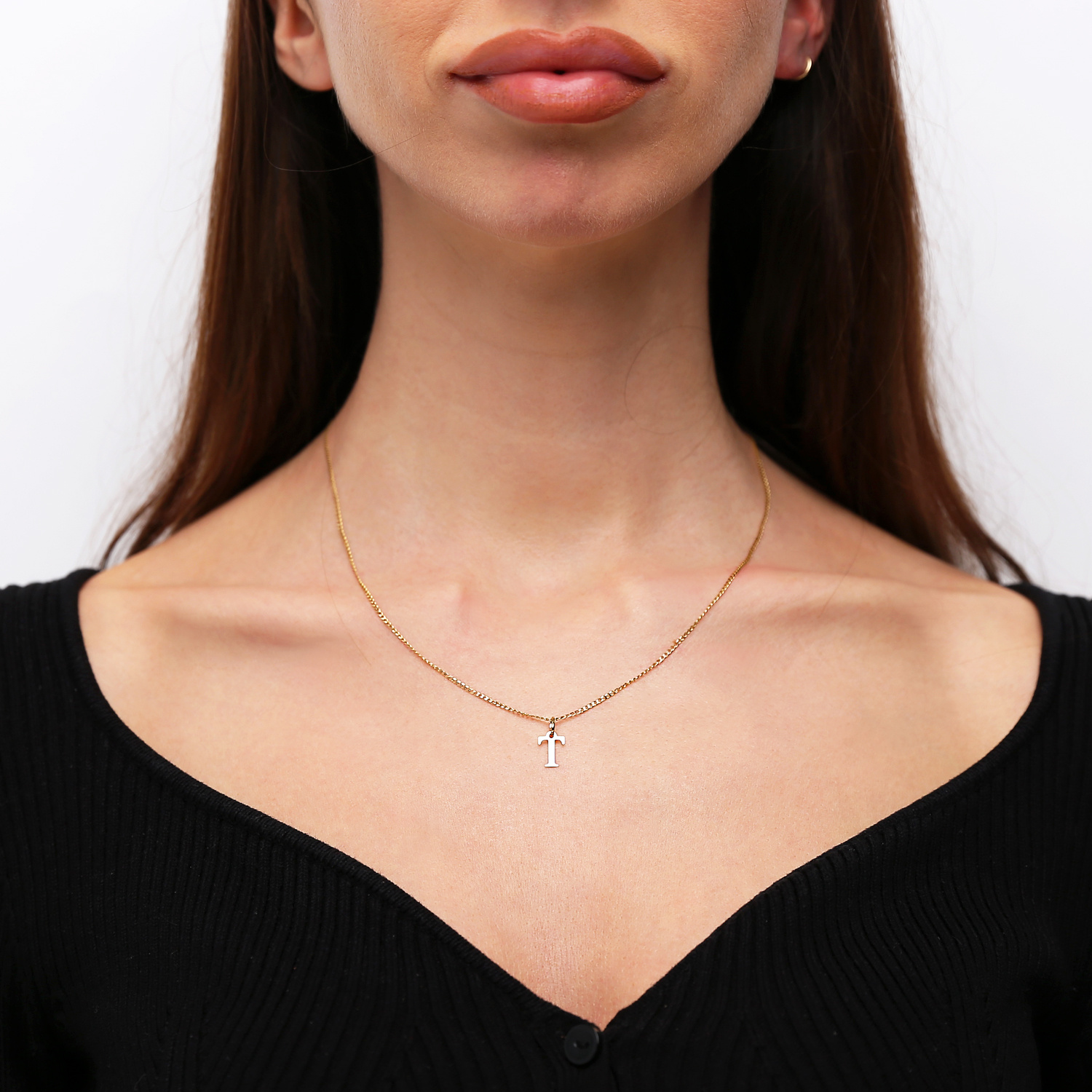• Ein Goldanhänger in der einfachen Form des Buchstabens H, hergestellt aus 585er Gold.