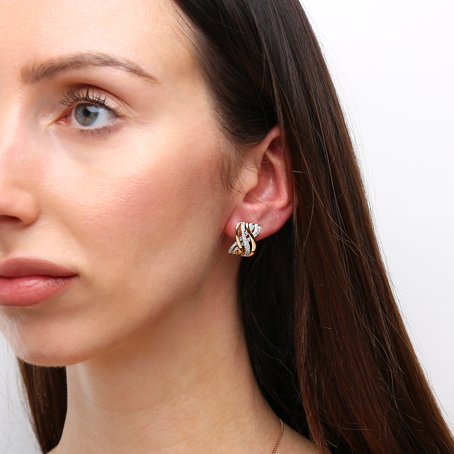 - Klassische längliche Ohrringe. Kombination aus Weiß-, Gelb- und Roségold. Besetzt mit Diamanten von insgesamt 0,90 ct. Sie werden Ihnen zeitlose Klasse bieten!