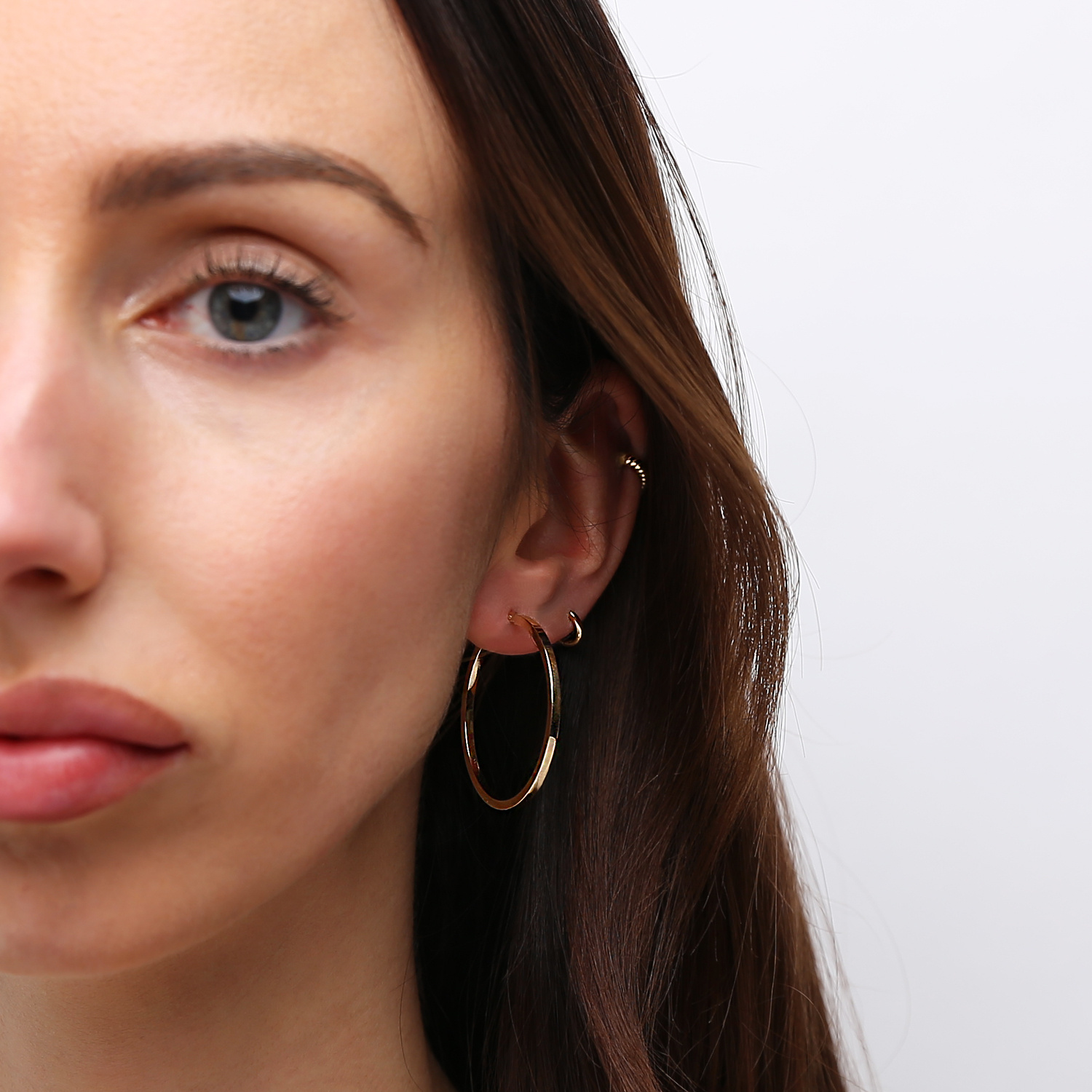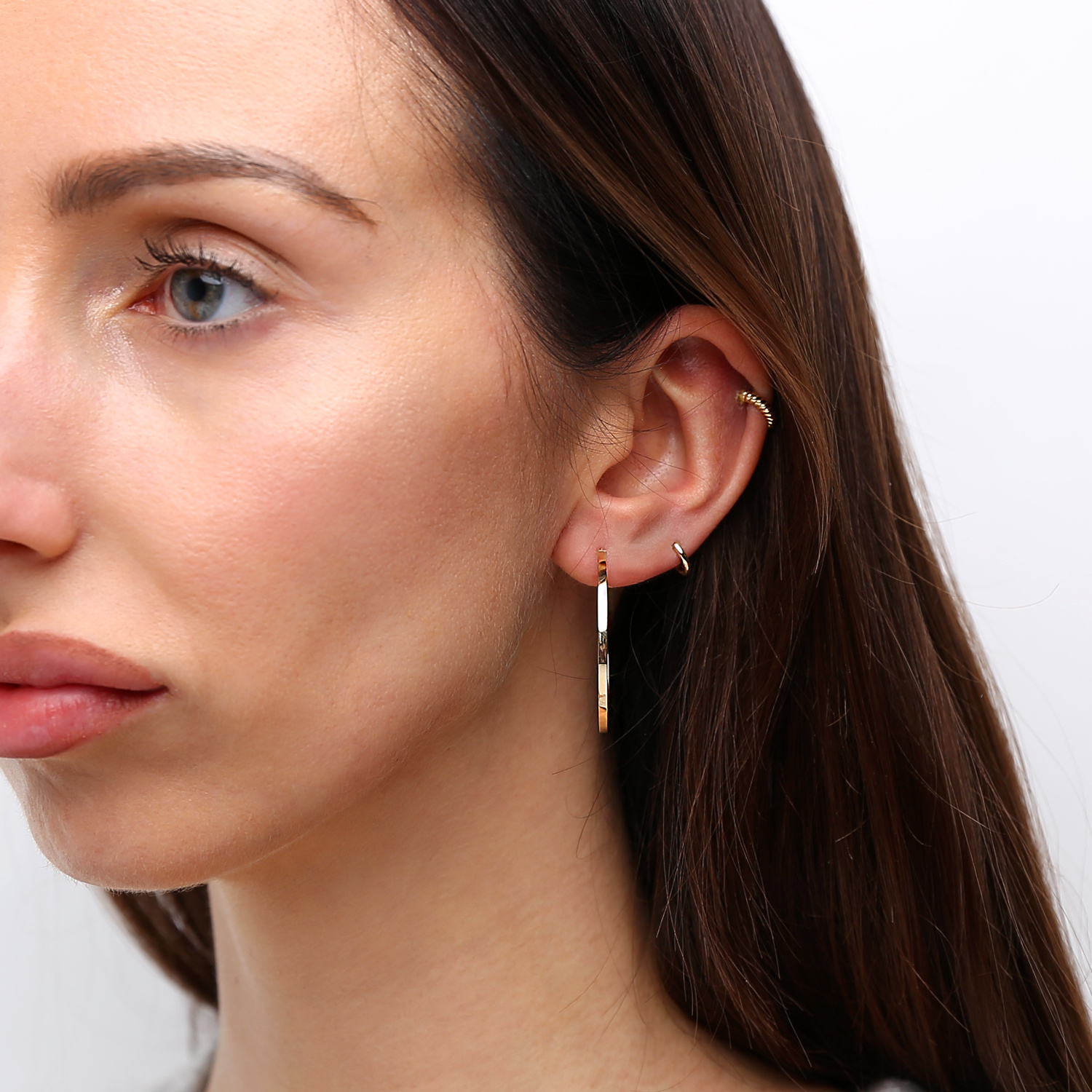 Kreisförmige Ohrringe in Gelb 585-Probe Gold - 14 Karat. Die Oberfläche der Ohrringe ist diamantgeschliffen mit abgerundeten Kanten. Sharnir-Verschluss. Sie sehen wunderschön an den Ohren aus.