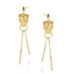 Gold-Tiger-Ohrringe 585 Tigerkopf-Anhänger lang