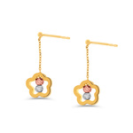 Goldene durchbrochene Kleeblatt-Ohrringe mit Zirkonia an einem 585 Daisy-Stift