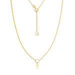 Gold 585 Festkreuz Halskette auf Kreis mit Zirkonia am Verschluss 42 - 45 cm